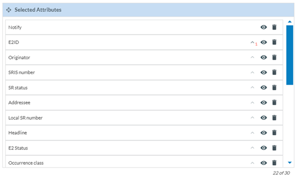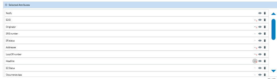 The Officer can alter their order by dragging and dropping them or by clicking on each arrow, i.e., E2ID is number 1, then each time the Officer marks an arrow, it sets the order of the attributes in the list: