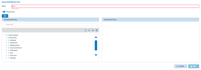 Officers can define attribute Lists containing a list of attributes and metadata fields. These At-tribute Lists will be available to the Officer when exporting SRs from the list.