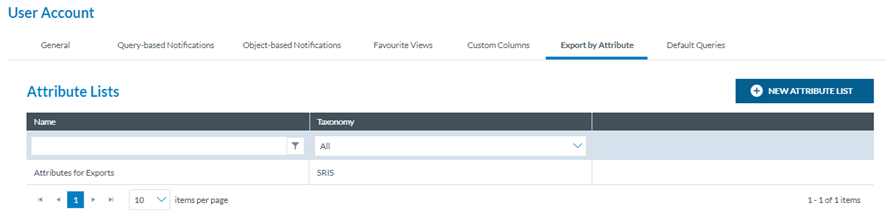 Each row of the table refers to a list of attributes defined by the Officer and concerning the Authority’s SRIS taxonomy, central or custom.